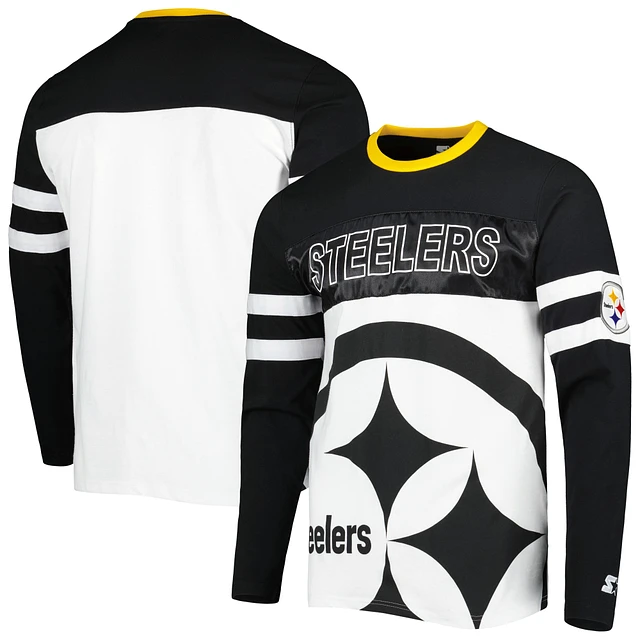 Men's Starter Black/White Pittsburgh Steelers Halftime Long Sleeve T-Shirt