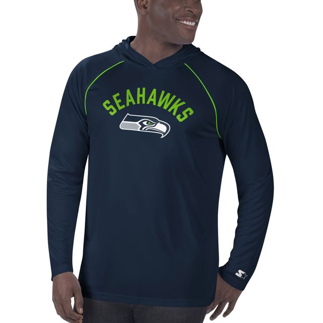 Men's Starter College Navy Seattle Seahawks Raglan - Long Sleeve Hoodie T-Shirt