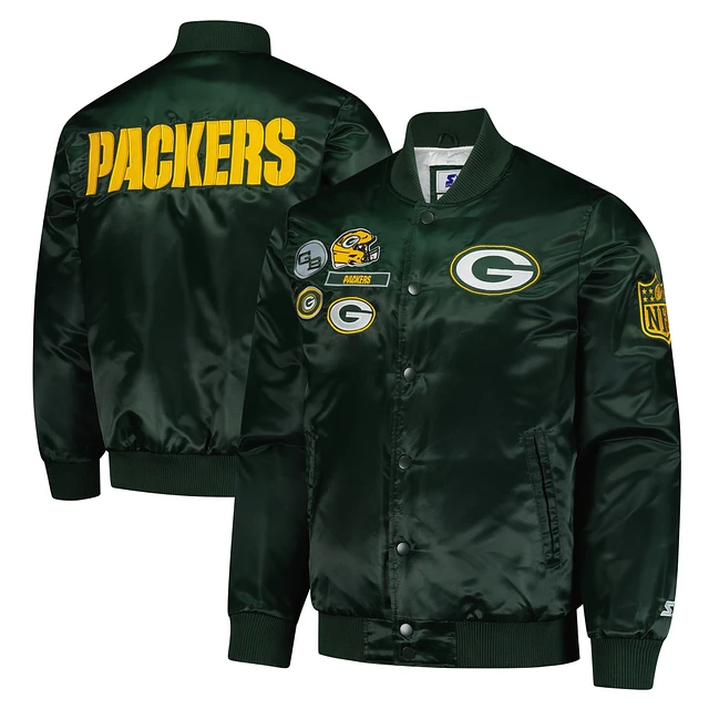 Men's Starter Green Bay Packers Exclusive Satin Full-Snap Varsity Jacket