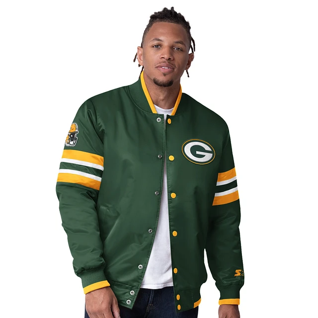 Men's Starter Green Bay Packers Scout I Full-Snap Varsity Jacket
