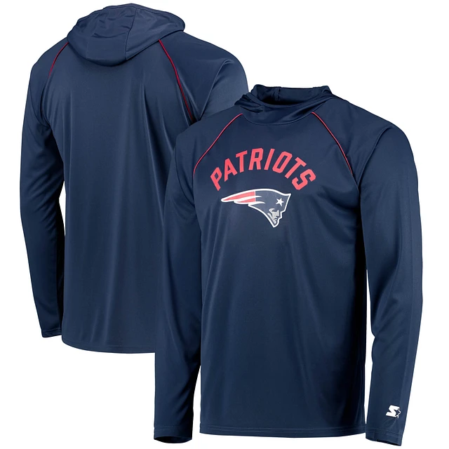 Men's Starter Navy New England Patriots Raglan Long Sleeve Hoodie T-Shirt