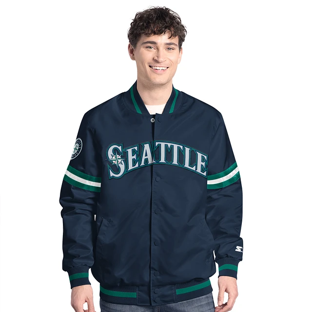 Men's Starter Navy Seattle Mariners Scout Full-Snap Varsity Jacket