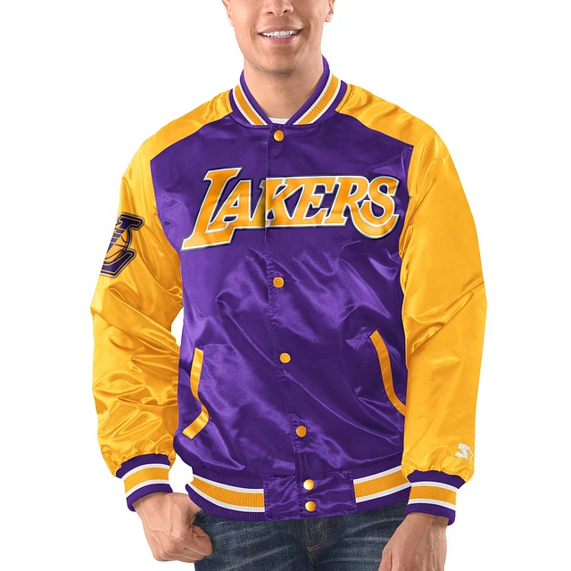Men's Starter Purple/Gold Los Angeles Lakers Renegade Satin Full-Snap Varsity Jacket