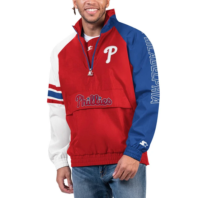 Men's Starter Red/Royal Philadelphia Phillies Elite Raglan Half-Zip Jacket