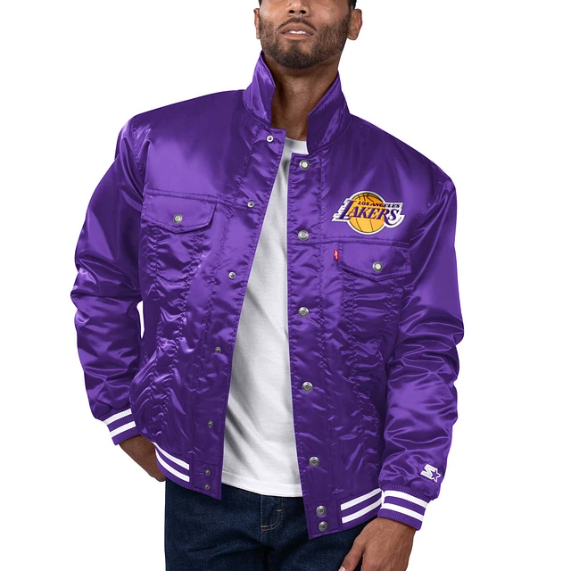 Men's Starter x Levi's Los Angeles Lakers Silver Label Trucker Satin Full-Snap Jacket