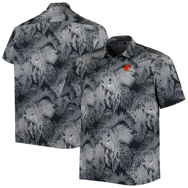 Men's Tommy Bahama Black Cleveland Browns Big & Tall Coast Luminescent Fronds Camp IslandZone Button-Up Shirt