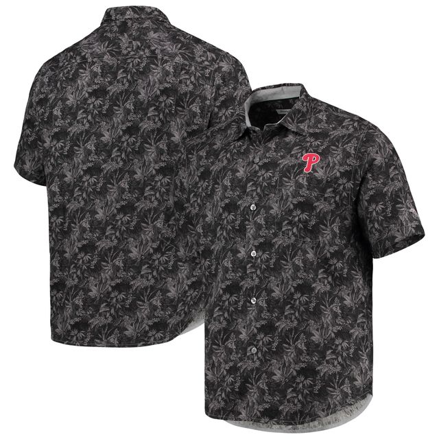 Men's Tommy Bahama Black Philadelphia Phillies Jungle Shade Silk Camp Button-Up Shirt