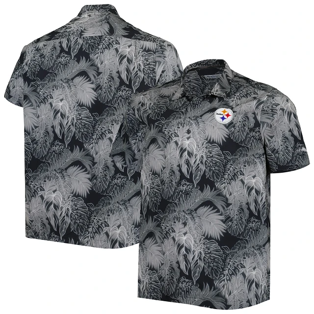 Men's Tommy Bahama Black Pittsburgh Steelers Big & Tall Coast Luminescent Fronds Camp IslandZone Button-Up Shirt