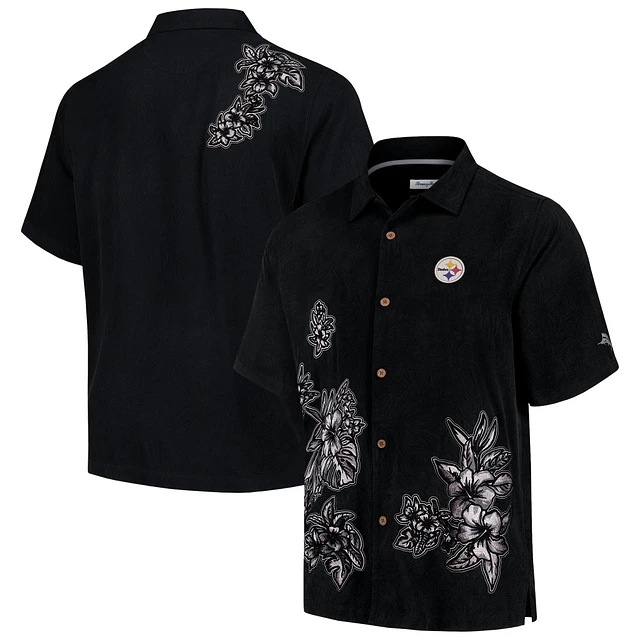 Men's Tommy Bahama Black Pittsburgh Steelers Hibiscus Camp Button-Up Shirt