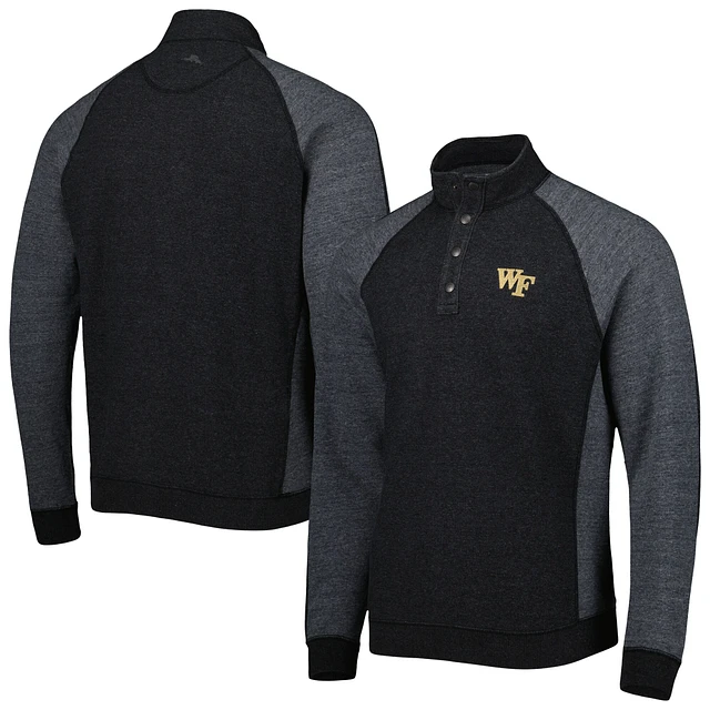 Men's Tommy Bahama Black Wake Forest Demon Deacons Scrimmage Snap Mock Neck Raglan Button-Up Jacket