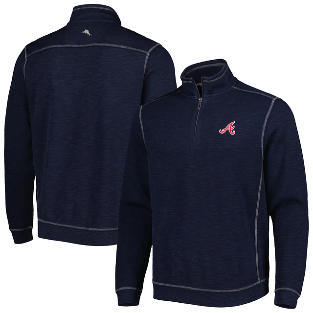 Men's Tommy Bahama Blue Atlanta Braves Tobago Bay Tri-Blend Quarter-Zip Sweatshirt
