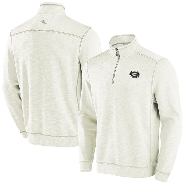 Men's Tommy Bahama Cream Georgia Bulldogs Tobago Bay Half-Zip Tri-Blend Top