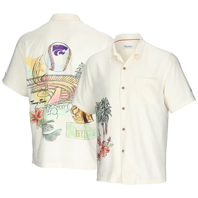 Men's Tommy Bahama Cream Kansas State Wildcats Paradise Fly Ball Camp Button-Up Shirt