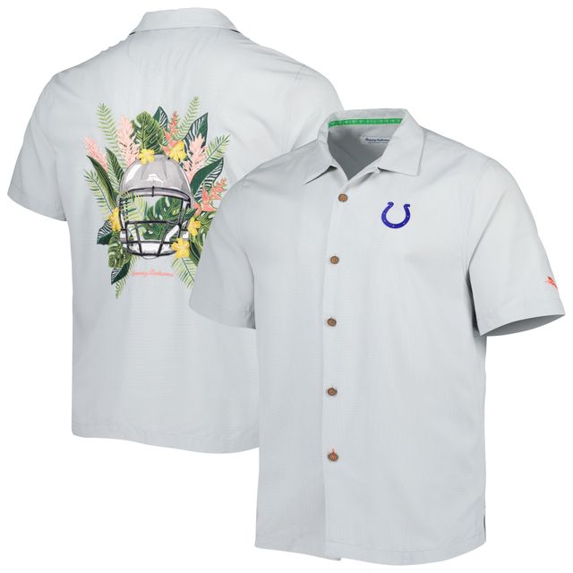 Men's Tommy Bahama Gray Indianapolis Colts Coconut Point Frondly Fan Camp IslandZone Button-Up Shirt