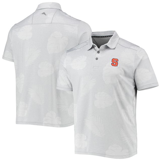 Men's Tommy Bahama Gray Syracuse Orange Palm Coast Delray Frond IslandZone Allover Print Polo