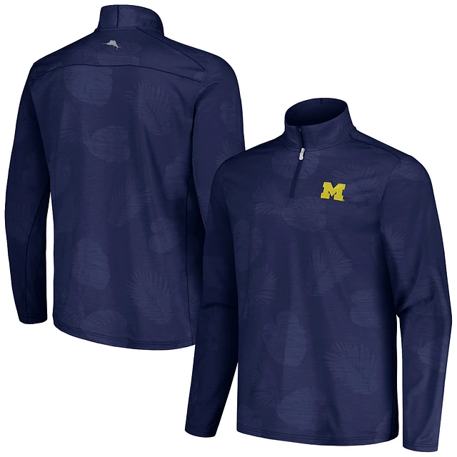 Men's Tommy Bahama Navy Michigan Wolverines Delray Frond IslandZone Half-Zip Jacket