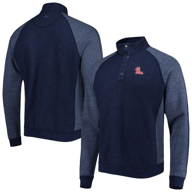 Men's Tommy Bahama Navy Ole Miss Rebels Sport Scrimmage Snap Mock Neck Raglan Button-Up Jacket