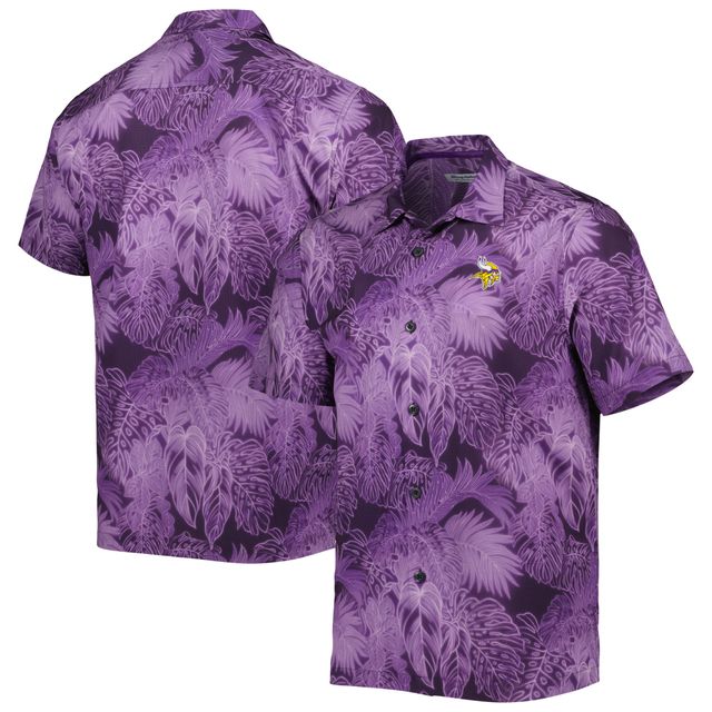 Men's Tommy Bahama Purple Minnesota Vikings Coast Luminescent Fronds Camp IslandZone Button-Up Shirt