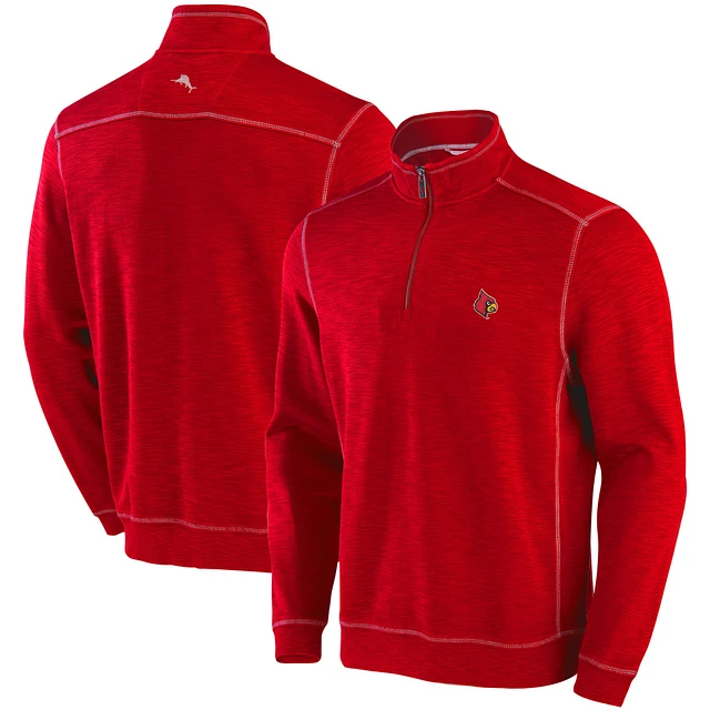 Men's Tommy Bahama Red Louisville Cardinals Sport Tobago Bay Tri-Blend Half-Zip Jacket