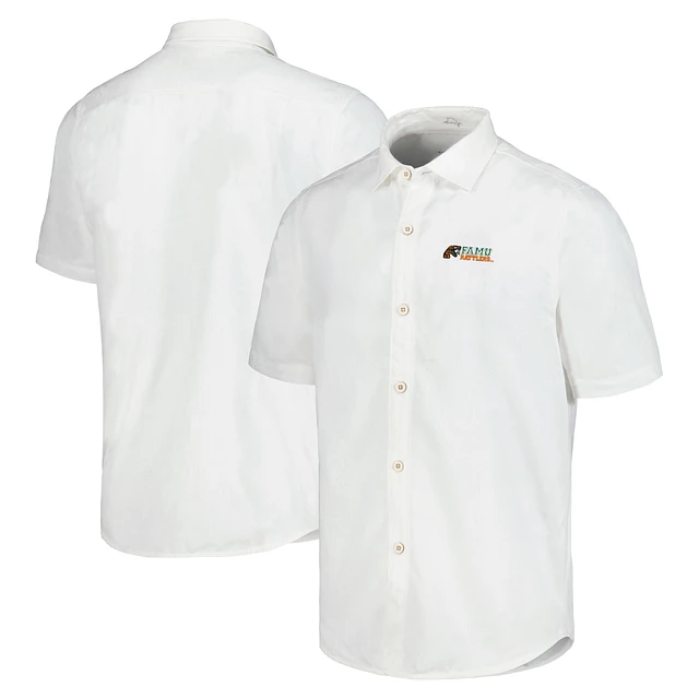 Men's Tommy Bahama White Florida A&M Rattlers Coconut Point Palm Vista IslandZone Camp Button-Up Shirt