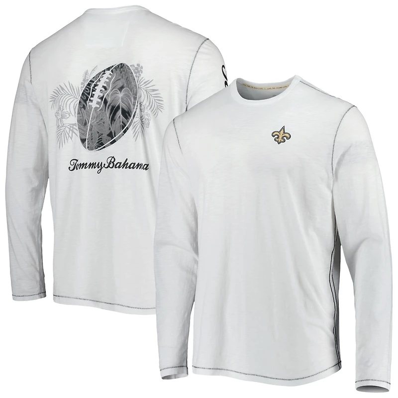 Men's Tommy Bahama White New Orleans Saints Laces Out Billboard Long Sleeve T-Shirt