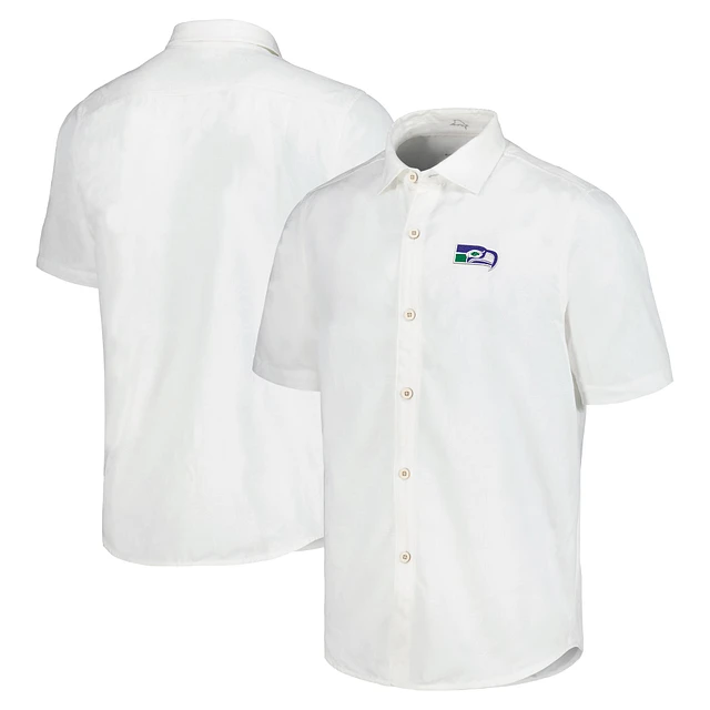 Men's Tommy Bahama White Seattle Seahawks Sport Coconut Point Palm Vista IslandZone Button-Up Camp Shirt