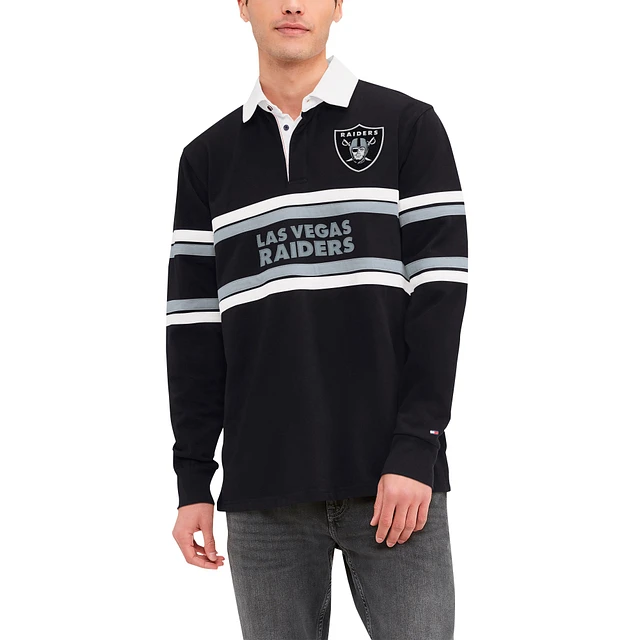 Men's Tommy Hilfiger Black Las Vegas Raiders Cory Varsity Rugby Long Sleeve T-Shirt
