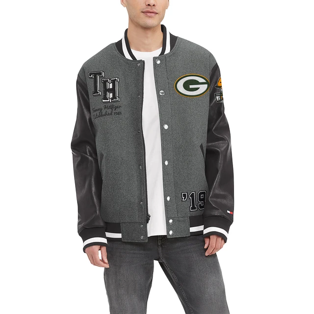 Men's Tommy Hilfiger Heather Gray/Black Green Bay Packers Gunner Full-Zip Varsity Jacket