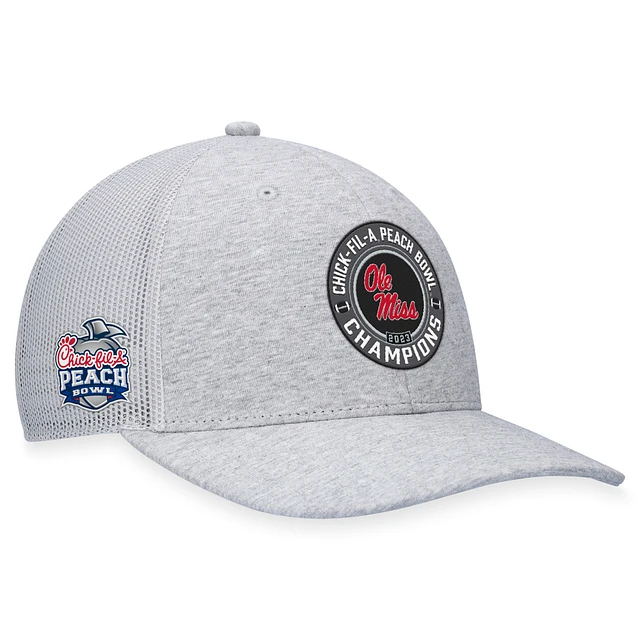 Men's Top of the World Heather Gray Ole Miss Rebels 2023 Peach Bowl Champions Trucker Adjustable Hat