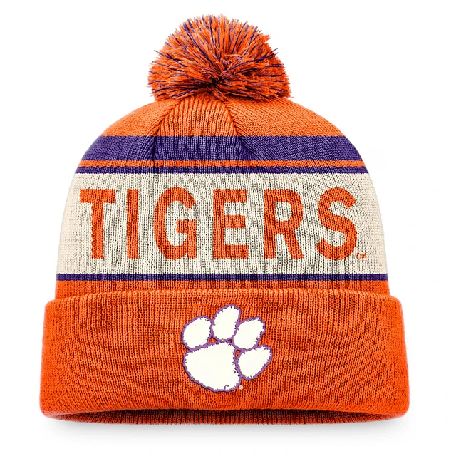Men's Top of the World Orange Clemson Tigers Prime Cuffed Knit Hat with Pom