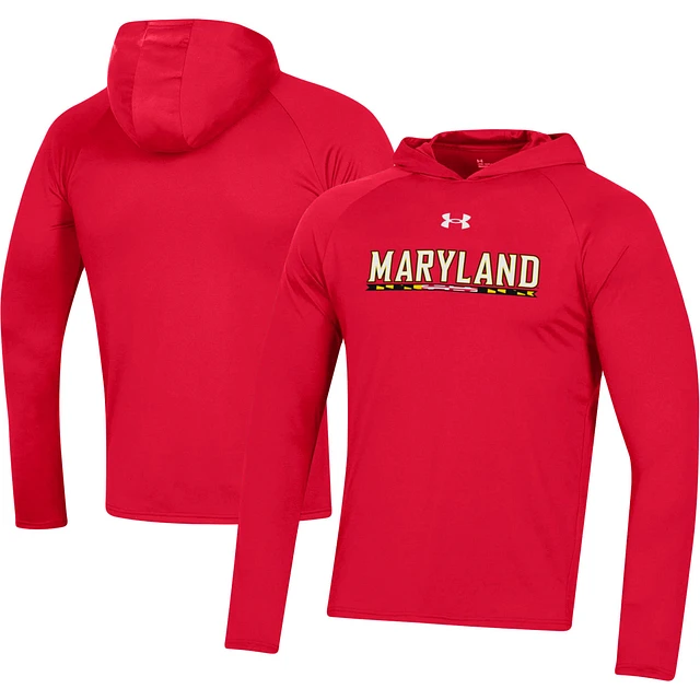 Men's Under Armour Red Maryland Terrapins School Logo Raglan Long Sleeve Hoodie Performance T-Shirt