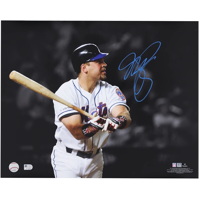 Elevate your collection of New York Mets memorabilia with this Mike Piazza autographed 16" x 20" Home Run Spotlight Photograph. Along with a distinct signature, it features an eye-catching image of the legendary catcher hitting his go-ahead homer just 10 days after the terror attacks at the World Trade Center. Obtained under the auspices of Major League Baseball, this collectible includes an individually numbered, tamper-evident hologram that can be verified online to certify authenticity.
