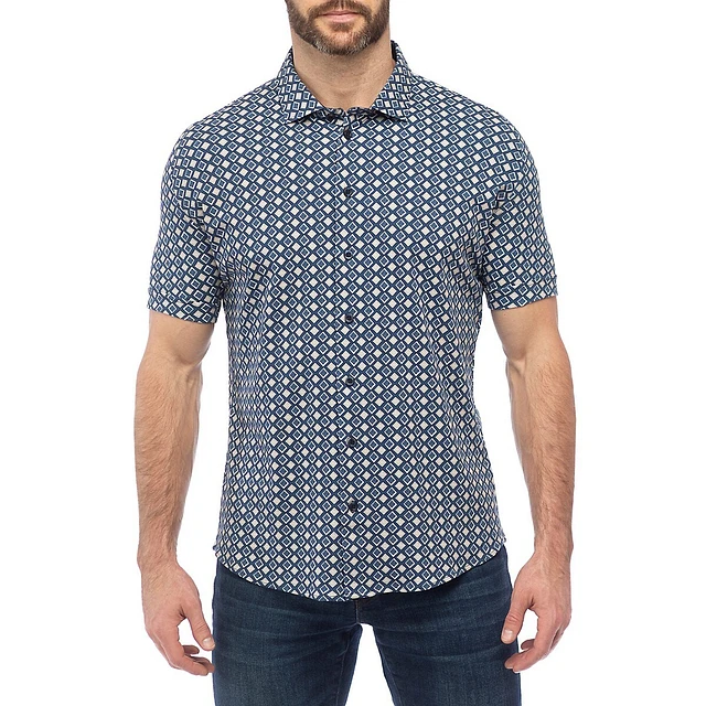 Modern-Fit Geo Tile-Print Stretch Shirt