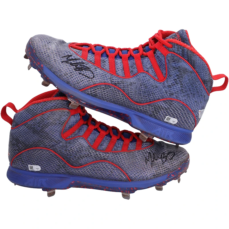 Fans can add this Los Angeles Dodgers Autographed Game-Used Blue and Red Cleats from the 2021 MLB Season to their collection for the ultimate connection to Mookie Betts. Betts crossed the plate for 93 runs while knocking out 23 homers in just 122 games in 2021. The six-time gold glover wore these cleats during the season and are individually numbered with a tamper-evident hologram that can be verified online to certify authenticity.