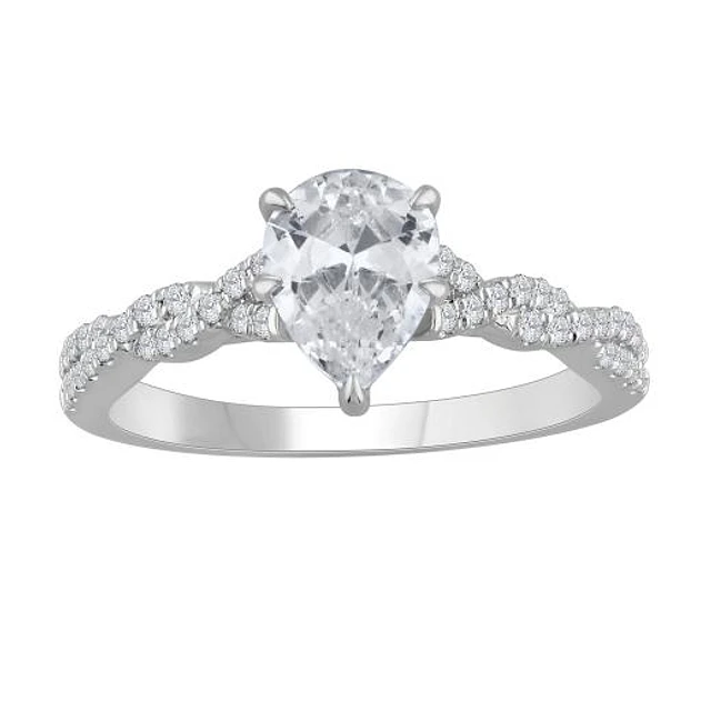 New Brilliance 14K White Gold Lab Grown 1.23CTW Pear Diamond Bridal Ring