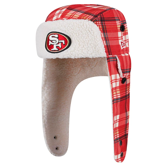 New Era Scarlet San Francisco 49ers Sideline Plaid Sherpa Trapper Hat