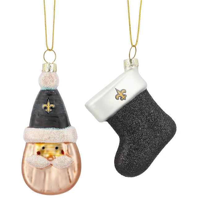 New Orleans Saints Two-Pack Santa & Stocking Blown Glass Ornament Set
