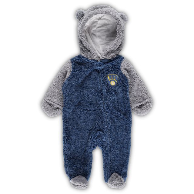 Newborn and Infant Navy/Gray Milwaukee Brewers Game Nap Teddy Fleece Bunting Full-Zip Sleeper