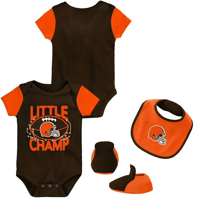 Newborn & Infant Brown/Orange Cleveland Browns Little Champ Three-Piece Bodysuit Bib Booties Set