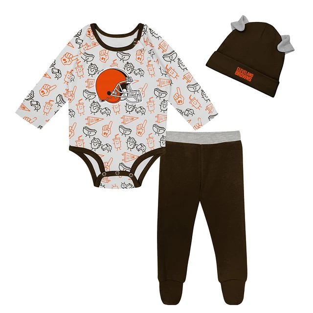 Newborn & Infant Cleveland Browns Little Champ Long Sleeve Bodysuit, Pants Cuffed Knit Hat 3-Piece Set