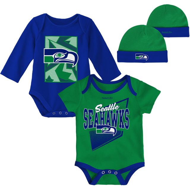 Newborn & Infant Green/Royal Seattle Seahawks Victory Formation Throwback Three-Piece Bodysuit and Knit Hat Set
