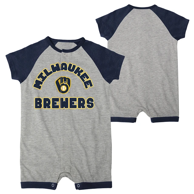 Newborn & Infant Heather Gray Milwaukee Brewers Extra Base Hit Raglan Full-Snap Romper