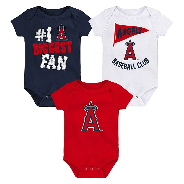 Infant Red/Navy/Pink Los Angeles Angels Baseball Baby 3-Pack Bodysuit Set