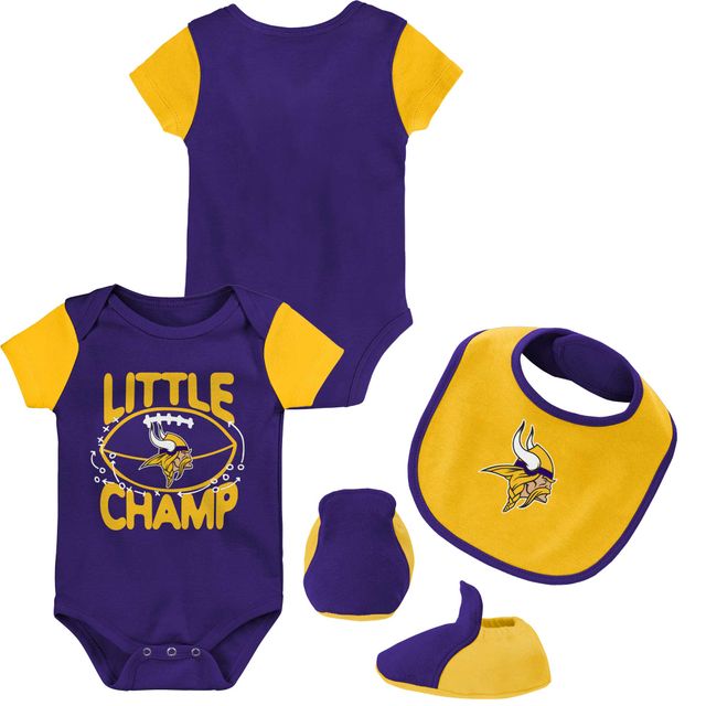 Newborn & Infant Purple/Gold Minnesota Vikings Little Champ Three-Piece Bodysuit Bib Booties Set