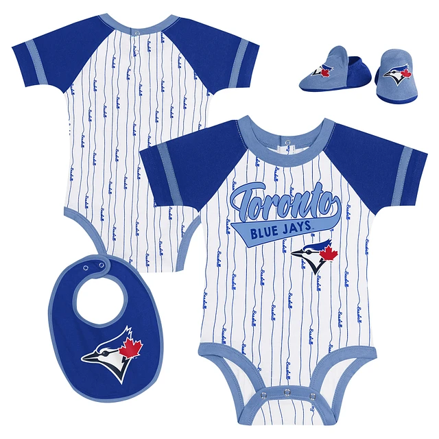 Newborn & Infant White Toronto Blue Jays Base Hitter Bodysuit, Bib Bootie Set