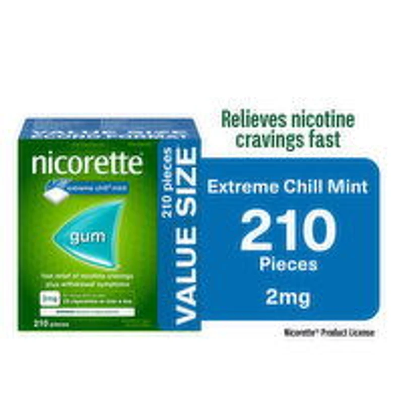 Only to be used by adults who are trying to quit smoking. WARNING: This product contains nicotine. Nicotine is highly addictive.Nicorette Gum 2mg of Nicotine, Mint, 210 Pieces helps relieve cravings to smoke and withdrawal symptomsIndicated for adults who smoke 25 cigarettes or less a day and want to quit immediately or graduallyThis Nicotine Replacement Therapy (NRT) and smoking cessation aid has 2 mg of nicotine per piece of gumUsing Nicorette nicotine gum can help double your chances of quitting versus willpower aloneGreat tasting Mint flavour, feel confident in your quit attempt with this smoking cessation aidGelatin-free and Sucrose-free (sweetened with sucralose)