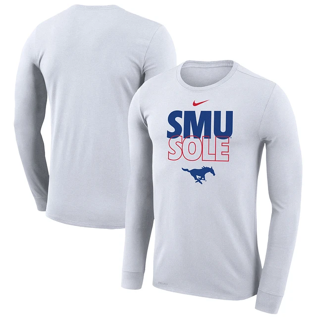 Nike White SMU Mustangs 2023 On Court Bench Long Sleeve T-Shirt