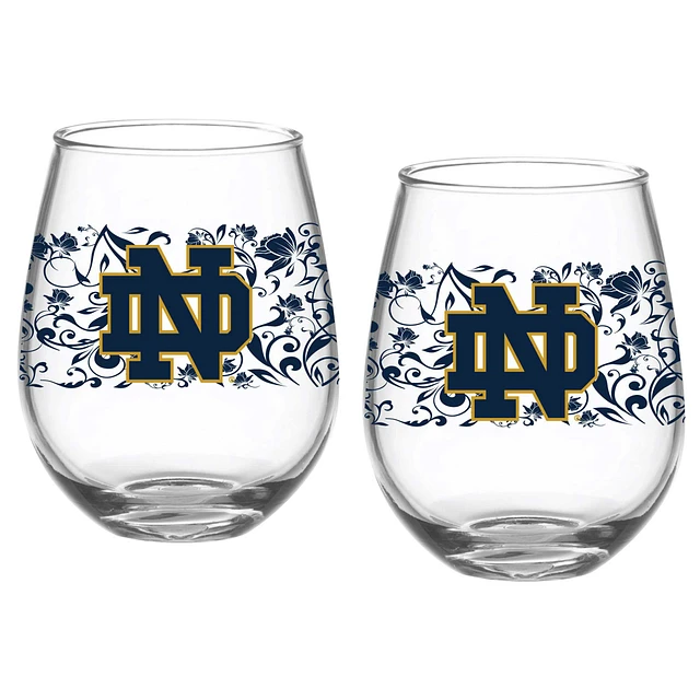 Notre Dame Fighting Irish Two-Pack 15oz. Floral Stemless Glass Set
