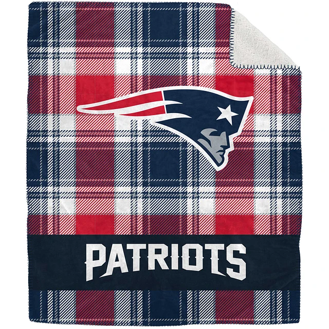Pegasus New England Patriots 50" x 60" Plaid Flannel Sherpa Plush Blanket