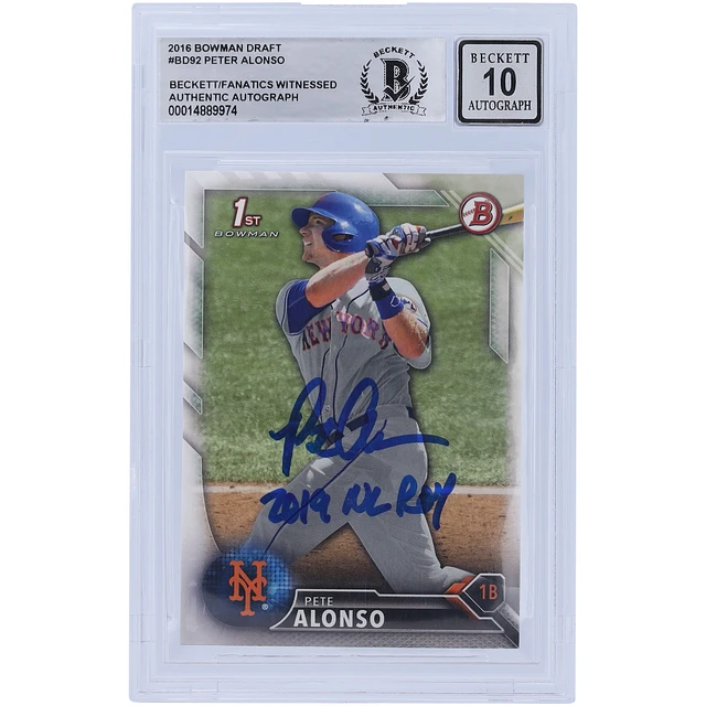Pete Alonso New York Mets Autographed 2016 Bowman Draft #BD-92 Beckett Fanatics Witnessed Authenticated 10 Card with "2019 NL ROY" Inscription